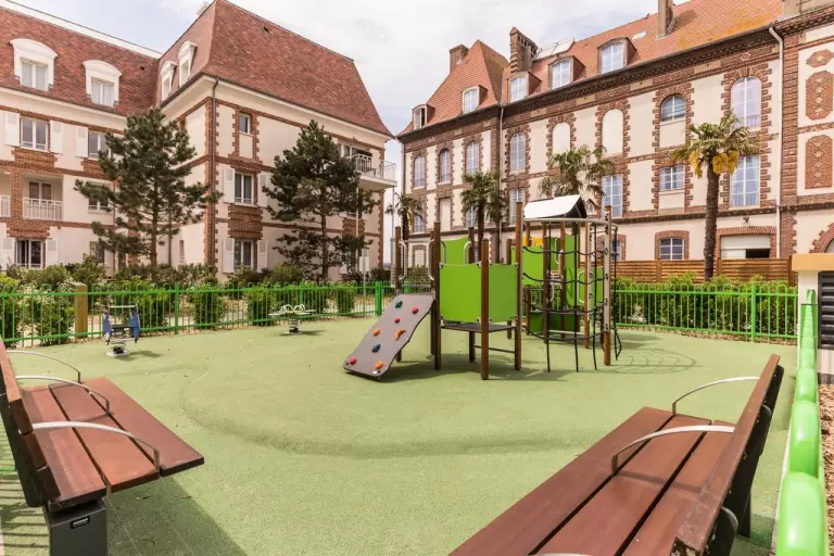 La résidence premium, au cœur d'un quartier chic, se situe à 300 mètres de la gare et dispose d'un parking. Ceux qui ont le coup de cœur reviennent sur un coup de tête ! C'est si pratique. Par son emplacement, elle offre un cadre terre-mer parfait pour varier les plaisirs. Que vous ayez envie de shopping ou d'une balade, la plage, le centre de Deauville et de Trouville sont à moins de 15 minutes à pied.