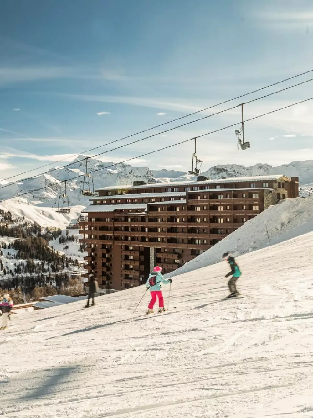 La résidence est située idéalement dans le village d'Aime la Plagne. Elle permet un départ skis aux pieds pour dévaler sans tarder les 425 km de pistes du domaine Paradiski. Ici, les sports de glisse et d'après-ski sont rois. Ski, raquettes, bobsleigh, chiens de traîneau... Pour plus de facilité, vous aurez la possibilité de louer votre matériel dans le magasin Skiset situé au sein de la résidence.