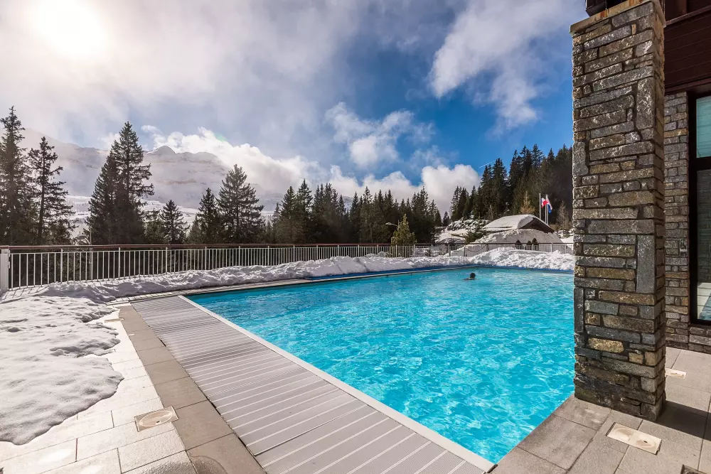 - Piscine : Inclus. Piscine extérieure chauffée, située au cœur de la résidence et offrant une vue imprenable sur les montagnes.