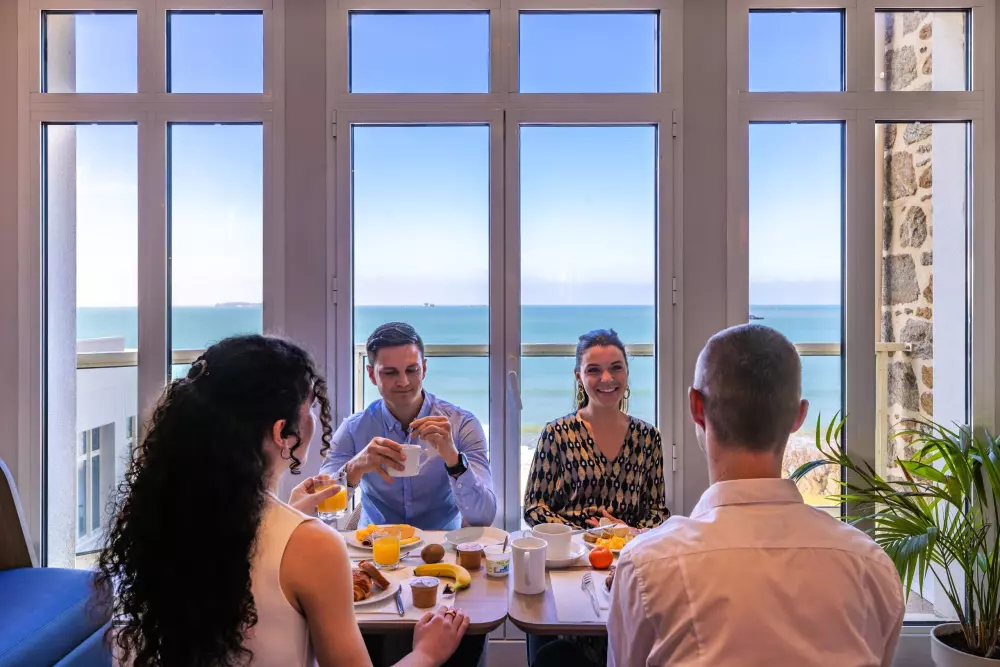 Prenez le temps d'un moment de tranquillité face à la mer en vous installant au bar de l'établissement. Vous avez également la possibilité de prendre votre petit déjeuner de 8h à 10h30 au bar vue mer durant votre séjour.