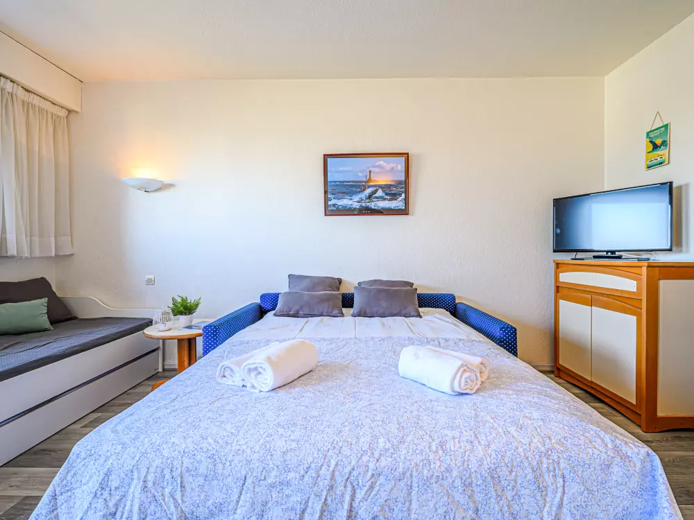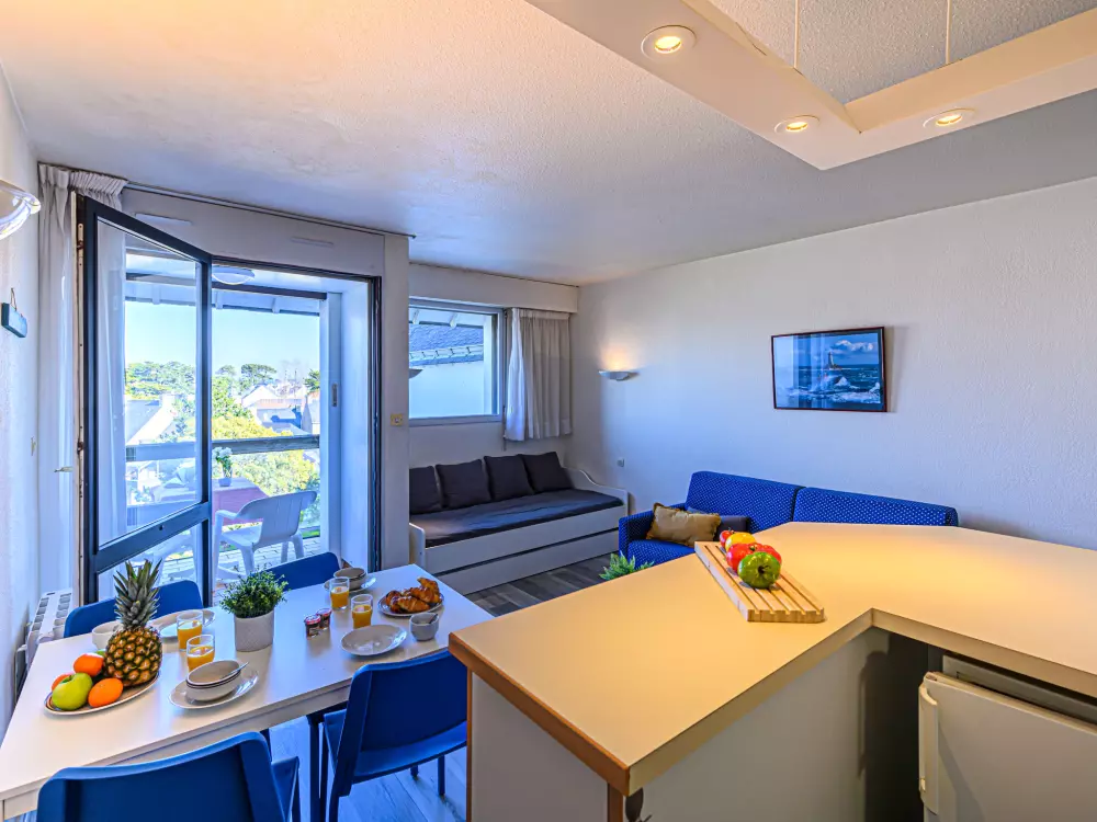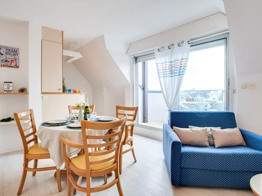 Résidence "Bleue Océane", de 4 étages. Dans la localité, à 300 m du centre de Carnac Plage, dans un quartier résidentiel, à, de la mer, à 200 m de la plage. En commun: piscine rectangulaire chauffée (3 x 6 m, profondeur 90 - 175 cm, disponibilité saisonnière: 15.Jun. - 15.Sep.). Infrastructures de la résidence: ascenseur, lave-linge, sèche-linge (en commun, en sus). Parking public possible dans la rue. Magasins, restaurant 300 m, plage de sable "Plage de Carnac" 150 m, centre thermal "Thalassothérapie" 150 m. Terrain de golf (18 trous) 15 km, ecole de surf 6 km, ecole de voile 150 m. Attractions à proximité: Les alignements de Carnac 6 km, Presqu'ile de Quiberon 25 km, Belle ile en Mer, Le Golfe du Morbihan, Vannes 35 km, Lorient 55 km. Bien convenant à 2 adultes + 2 enfants.