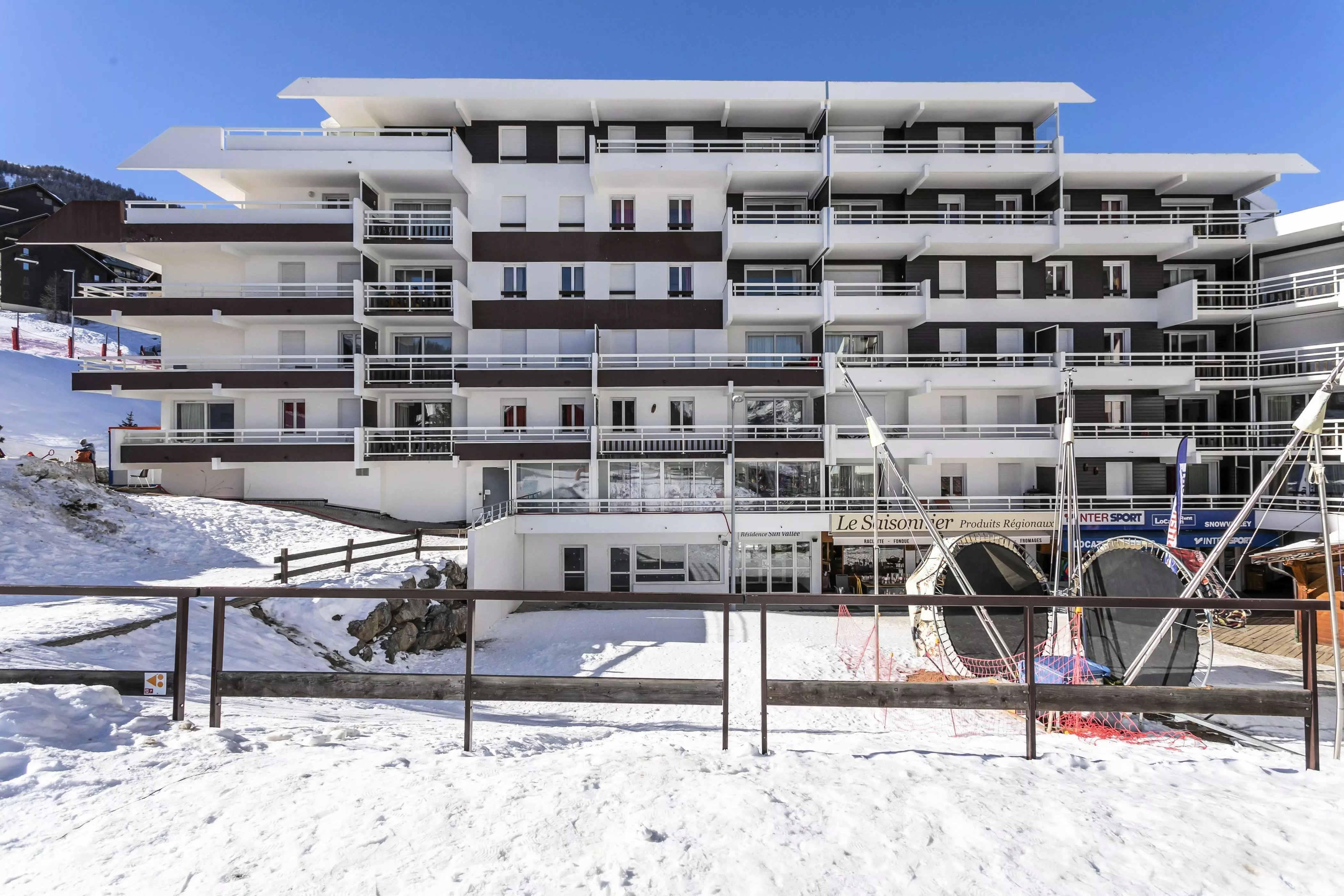 Située à 1600 mètres d'altitude, la Résidence Sun Valley se trouve en plein coeur de la station de Puy Saint Vincent. Bénéficiant d'un environnement à la fois paisible et grandiose, cette résidence sera pour vous le lieu de séjour idéal à l'entrée du Massif des Ecrins.