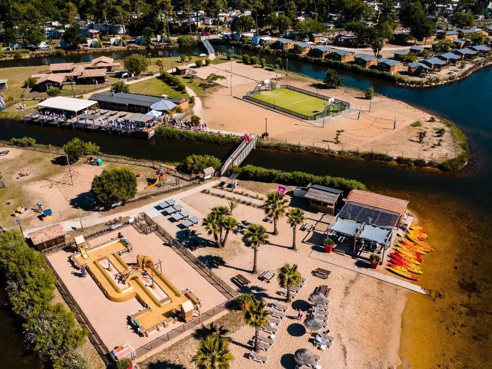 Supermarché, restaurant, bar, coiffeur, location de vélo, salle de gym, marché nocturne toute la saison, petit train du camping, Plan d'eau et plage privés, terrain de tennis, mini golf, ping pong, piscine couverte chauffée, lagon avec toboggan, jeu gonflable, jeu aquatique, canoë, ... et bien d'autres encore