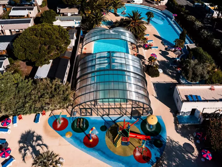 Complexe Aquatique de 600 m² de bassins : Les enfants apprécieront la rivière sauvage de la piscine ou les pistes de glisse, les adultes la belle piscine couverte et les plus petits la splashzone !