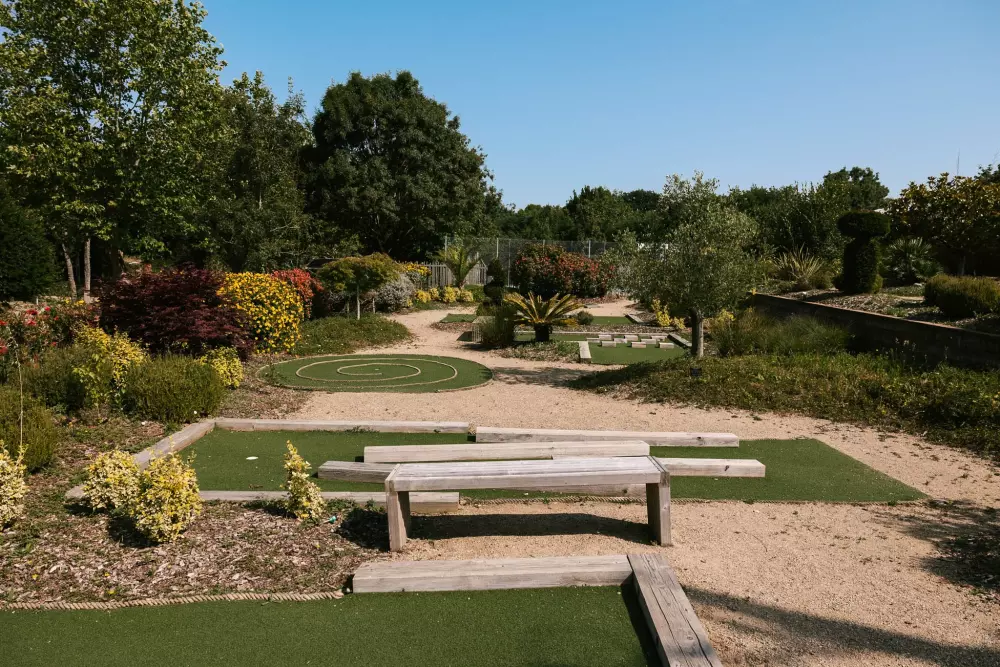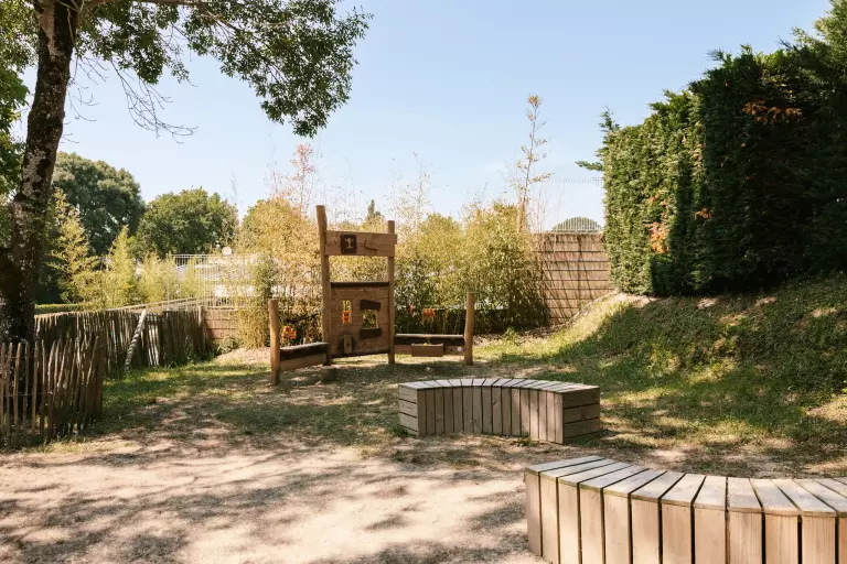 - Aire de jeux pour enfants : Zone de jeux pour enfants outdoor : jeux de sociétés, bac à sable, portique, jeux éducatifs, toboggan, balançoire
