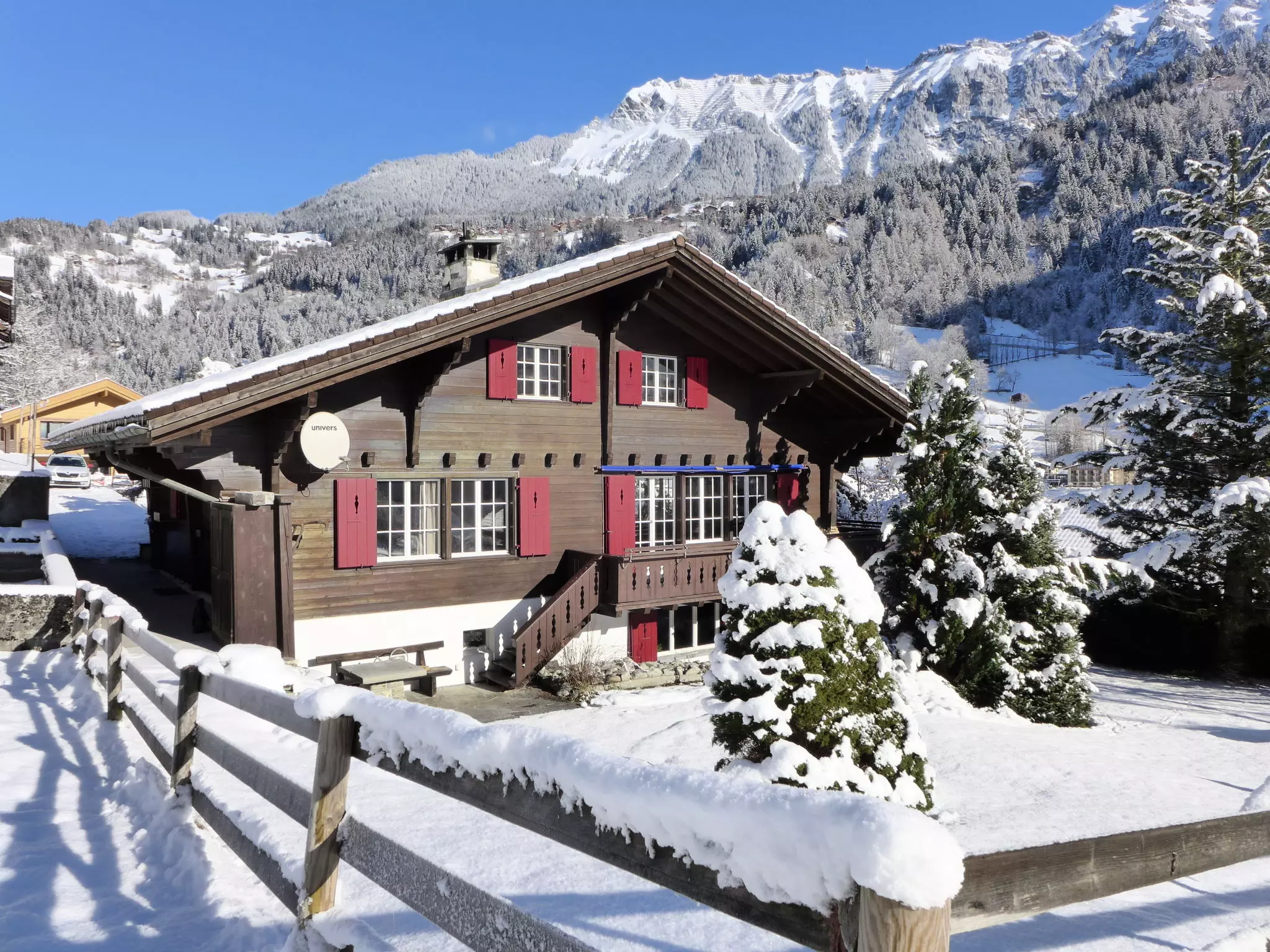 Lauterbrunnen à 10 km de Interlaken: Grand chalet confortable "am Schärm", de 3 étages, environné par les arbres et prés. Au centre de Lauterbrunnen, situation centrale, tranquille, ensoleillée sur un versant. A usage privé: grand jardin pelouse et plantes. Meubles de jardin, barbecue. Infrastructures de la Maison: local pour les skis, chauffage central, lave-linge, sèche-linge, appareil de séchage de chaussures à ski. Change de linge (suppl. en sus). Nettoyage possible (en sus). Accès en voiture jusqu'à la maison par un chemin étroite. En hiver 4x4 recommandé. Largeur de la route d'accès: 320 cm. Place de parking (pour 4 voitures) près de la maison. Magasins 300 m, supermarché 500 m, restaurant, boulangerie 400 m, arrêt de bus 300 m, gare ferroviaire "Lauterbrunnen", piscine 500 m. Terrain de golf (18 trous) 11 km, tennis 600 m, golf miniature 600 m, téléphérique 500 m, location de ski 250 m. Arrêt du ski-bus 200 m. Attractions à proximité: Jungfraujoch, Schilthorn, Interlaken 12 km. Les domaines skiables de renommée sont facilement accessibles: Wengen - Kleine Scheidegg, Mürren Schilthorn. Les lacs connus sont facilement accessibles: Thunersee, Brienzersee. Région de randonnées: Jungfrau Region, Hinteres Lauterbrunnental. Veuillez noter: adapté(e) aux familles, équipement pour bébés (en sus). Groupes de jeunes sur demande seulement. En cas de bonnes conditions d'enneigement, accès à ski jusqu'à la maison.