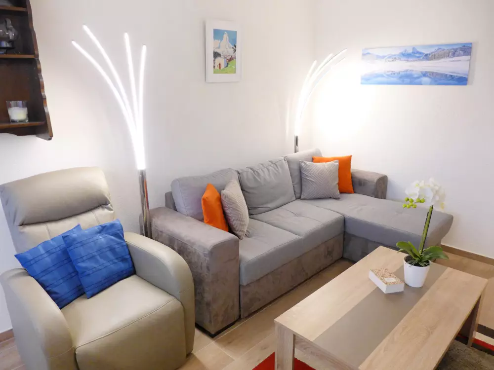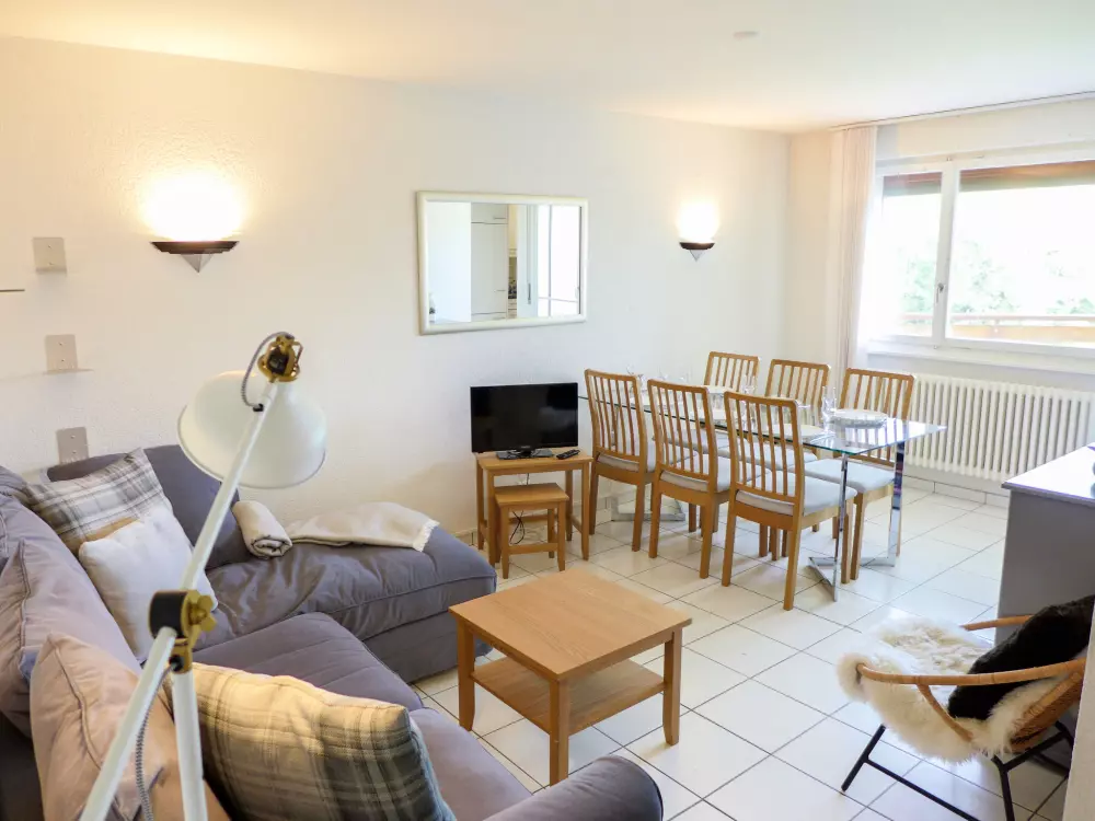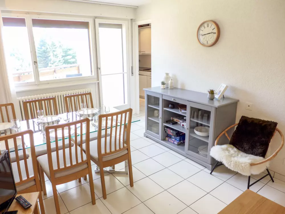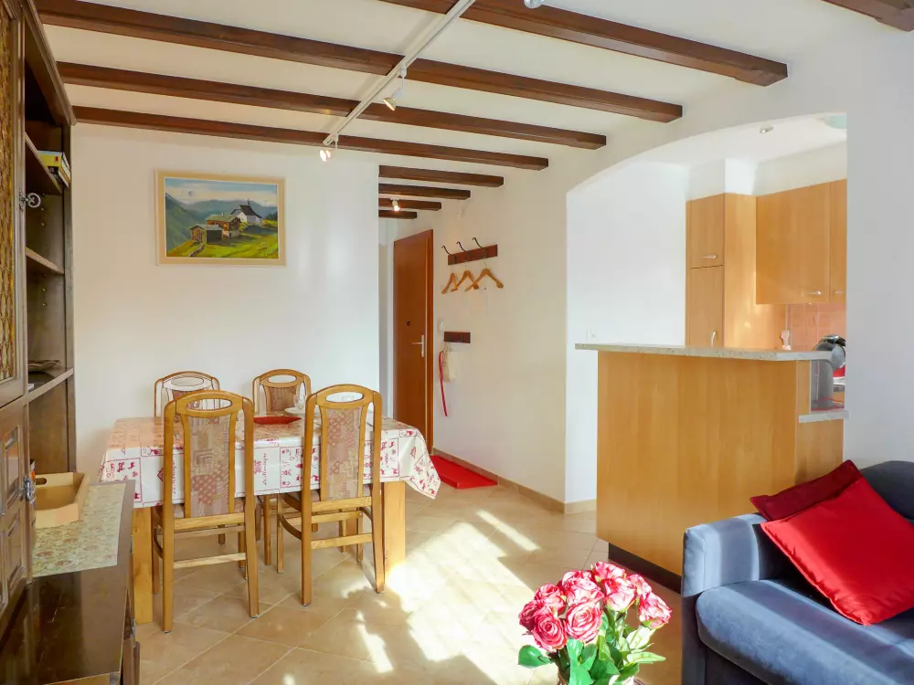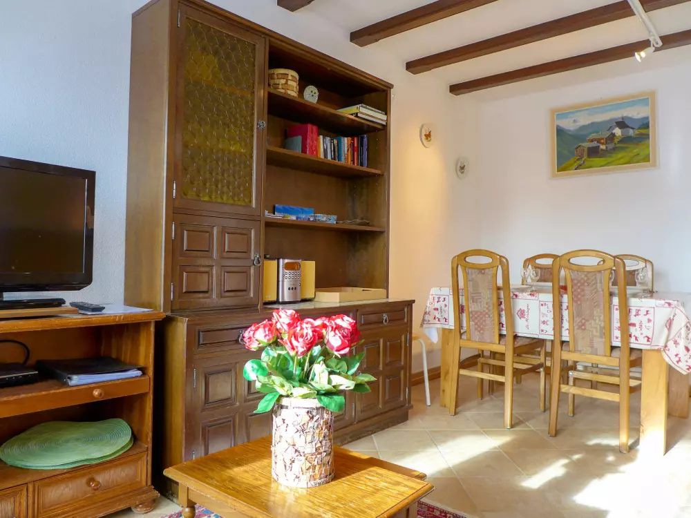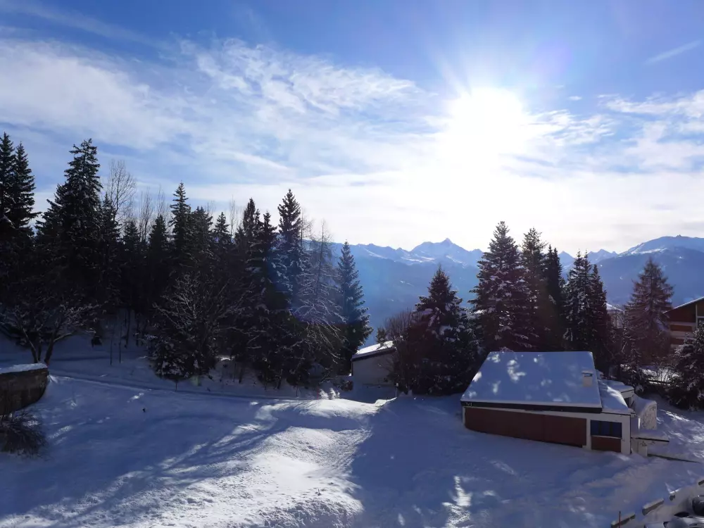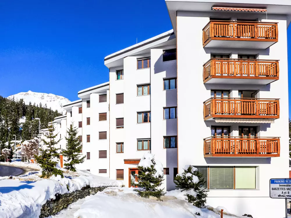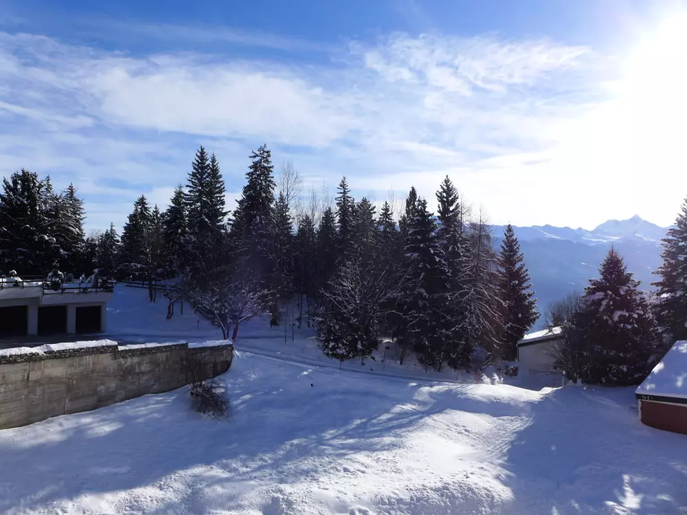 Immeuble "Barzettes-Vacances A/B". Dans le haut de la station de Montana, dans le quartier de Les Violettes, à 1.5 km du centre de Montana, à 2.2 km du lac, à 150 m du domaine skiable. Infrastructures de la Maison: ascenseur, local pour les skis, chauffage central, lave-linge (en sus), étendoir à linge. Place de parking (nombre de places limité) près de la maison, parking public couvert à 20 m, en sus. Magasin d'alimentation 1.5 km, supermarché 1.6 km, restaurant 1.5 km, boulangerie 250 m, arrêt de bus "télé Violettes" 100 m, gare ferroviaire "Funiculaire Montana Gare" 1.2 km, baignade en lac "Moubra" 2.5 km, lac Grenon 2.2 km. Terrain de golf (18 trous) 3.5 km, remontées mécaniques, pistes de ski, location de ski 150 m. Patinoire 1.9 km. Les lacs connus sont facilement accessibles: Etang de la Moubra 2.5 km. Veuillez noter: Le propriétaire n'accepte pas les groupes de jeunes. Ski-bus gratuit. D'autres appartements sont également proposés à la location dans cette maison de vacances.