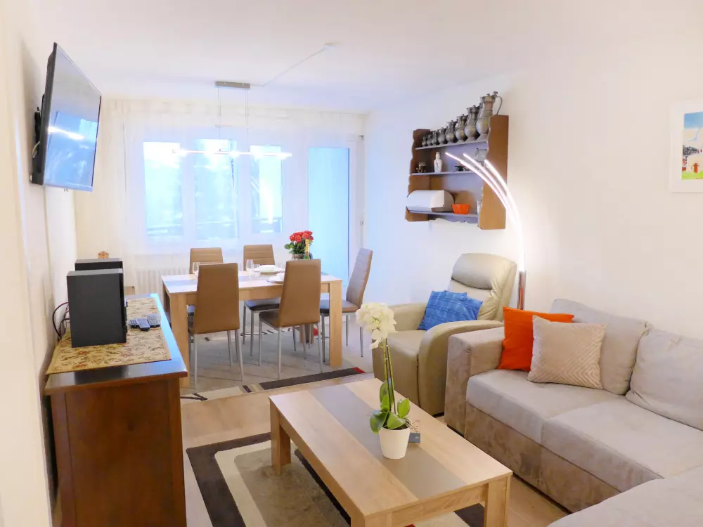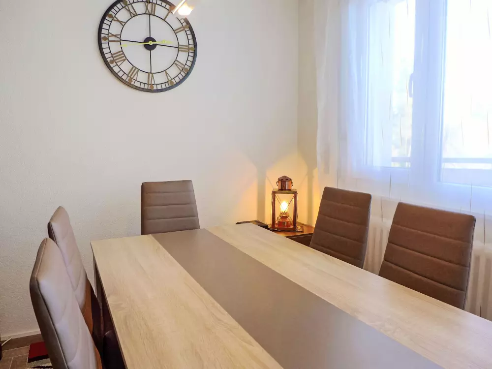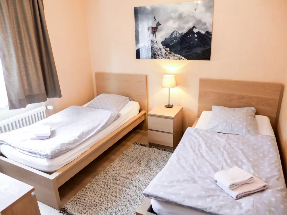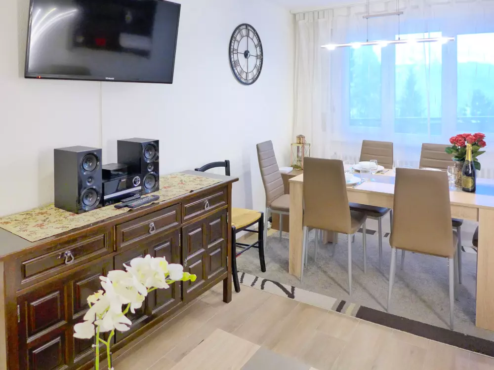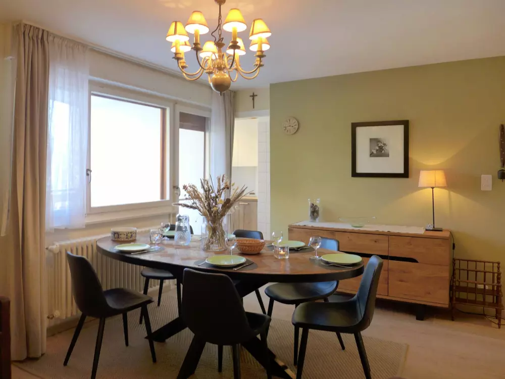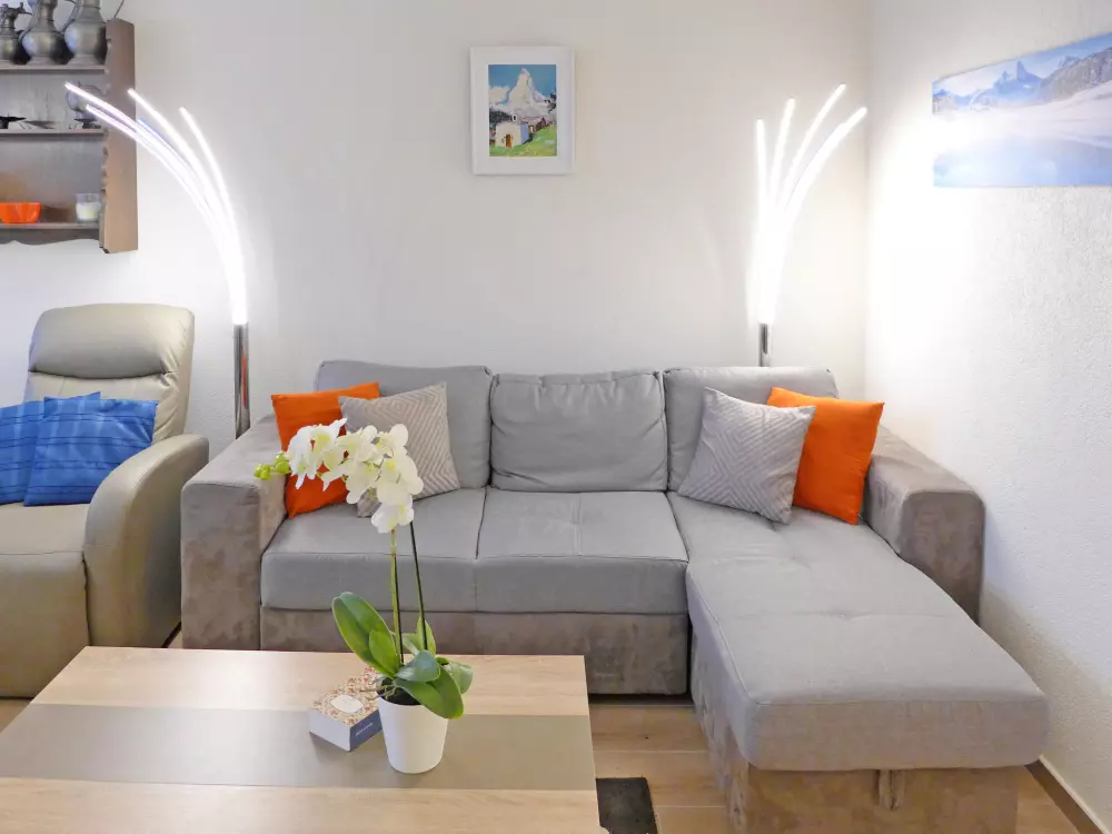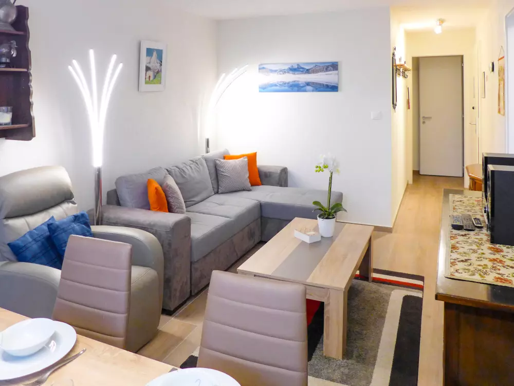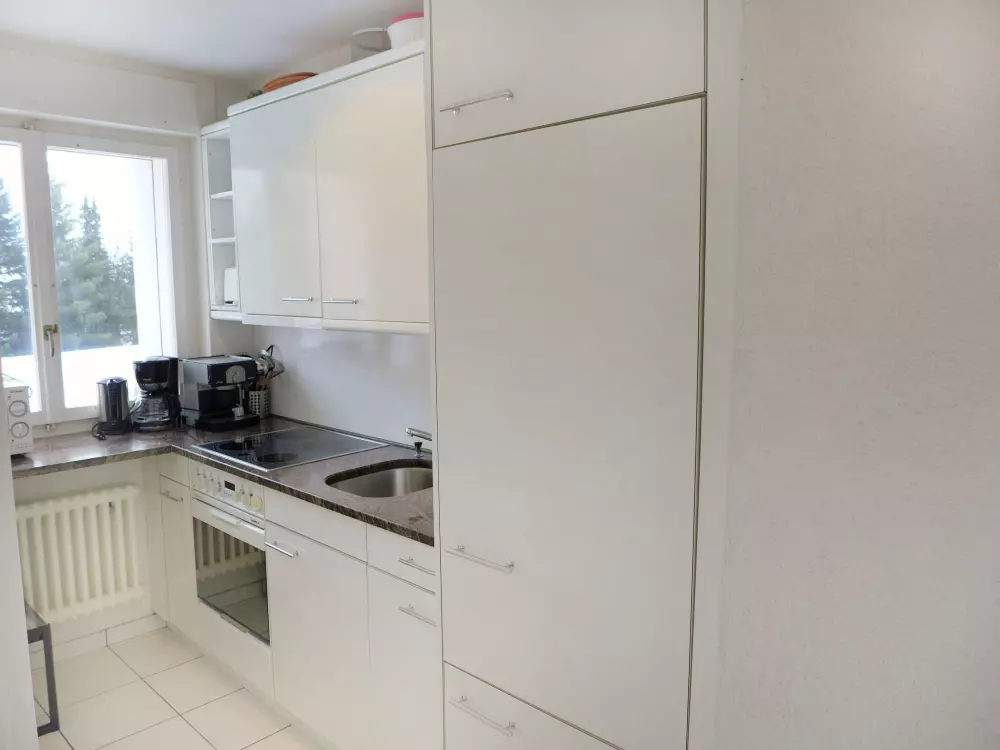 Immeuble "Barzettes-Vacances A/B". Dans le haut de la station de Montana, dans le quartier de Les Violettes, à 1.5 km du centre de Montana, à 2.2 km du lac, à 150 m du domaine skiable. Infrastructures de la Maison: ascenseur, local pour les skis, chauffage central, lave-linge (en sus), étendoir à linge. Place de parking (nombre de places limité) près de la maison, parking public couvert à 20 m, en sus. Magasin d'alimentation 1.5 km, supermarché 1.6 km, restaurant 1.5 km, boulangerie 250 m, arrêt de bus "télé Violettes" 100 m, gare ferroviaire "Funiculaire Montana Gare" 1.2 km, baignade en lac "Moubra" 2.5 km, lac Grenon 2.2 km. Terrain de golf (18 trous) 3.5 km, remontées mécaniques, pistes de ski, location de ski 150 m. Patinoire 1.9 km. Les lacs connus sont facilement accessibles: Etang de la Moubra 2.5 km. Veuillez noter: Le propriétaire n'accepte pas les groupes de jeunes. Ski-bus gratuit. D'autres appartements sont également proposés à la location dans cette maison de vacances.