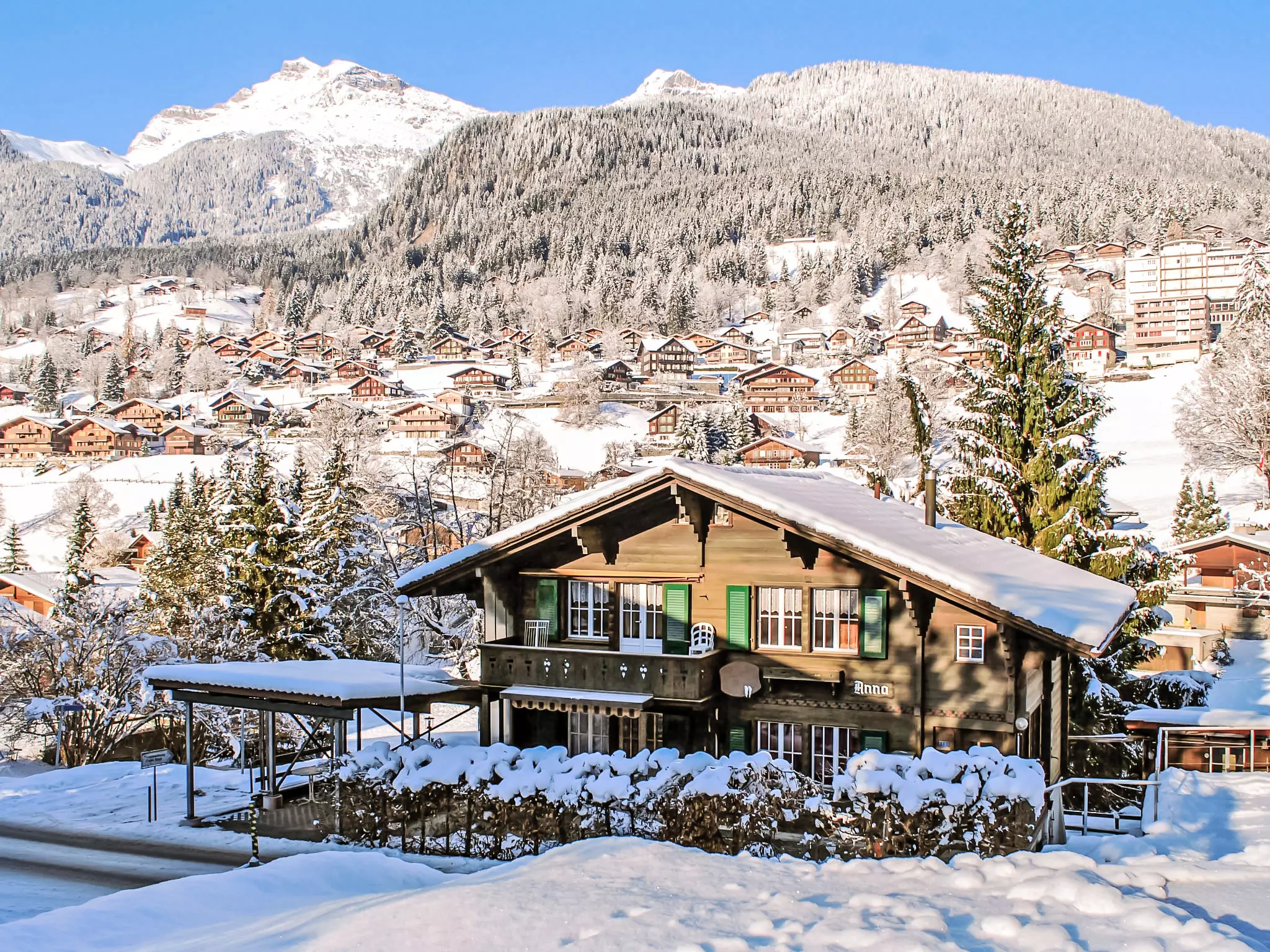 Maison à 3 apts accueillante "Chalet Anna". Dans le quartier d'in der Nirggen, à 900 m du centre, orientée sud. Infrastructures de la Maison: chauffage central, lave-linge, sèche-linge (en commun, en sus). Accès en voiture jusqu'à la maison. En hiver, merci de prévoir des chaînes. Sentier en escalier jusqu'à la maison. Place de parking (nombre de places limité) près de la maison. Centre commercial 900 m, restaurant 200 m, bar, location de bicyclettes 1.4 km, centre à 10 minutes à pieds, arrêt de bus "Nirggen" 50 m, gare ferroviaire "Grindelwald Grund" 400 m, piscine 200 m, piscine couverte 900 m. Terrain de golf (9 trous) 2.5 km, tennis 3 km, golf miniature 1.3 km, centre sportif 900 m, train de montagne 400 m, télécabine 500 m, location de ski. Arrêt du ski-bus 50 m, ski de fond 400 m, patinoire 900 m, jeux pour enfants 900 m. Les lacs connus sont facilement accessibles: Thuner-/Brienzersee 18 km. Veuillez noter: sans ascenseur. Ski-bus gratuit. Service de navette gratuite desservant le domaine skiable V-Bahn / Terminal. La remise des clés a lieu à l'agence Interhome de Grindelwald.