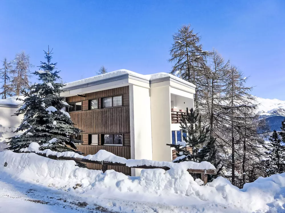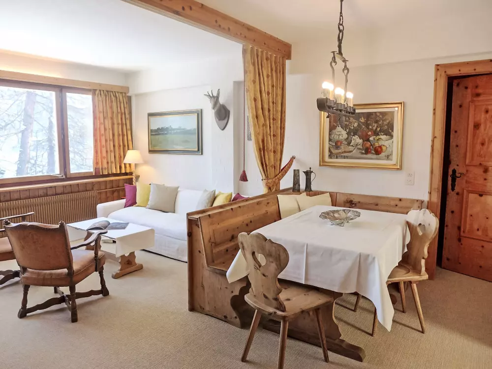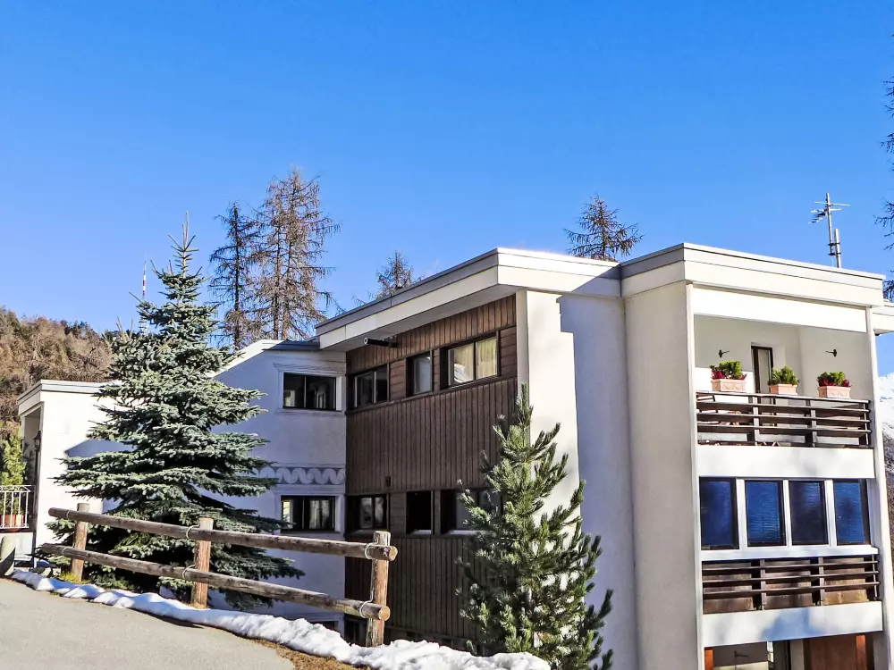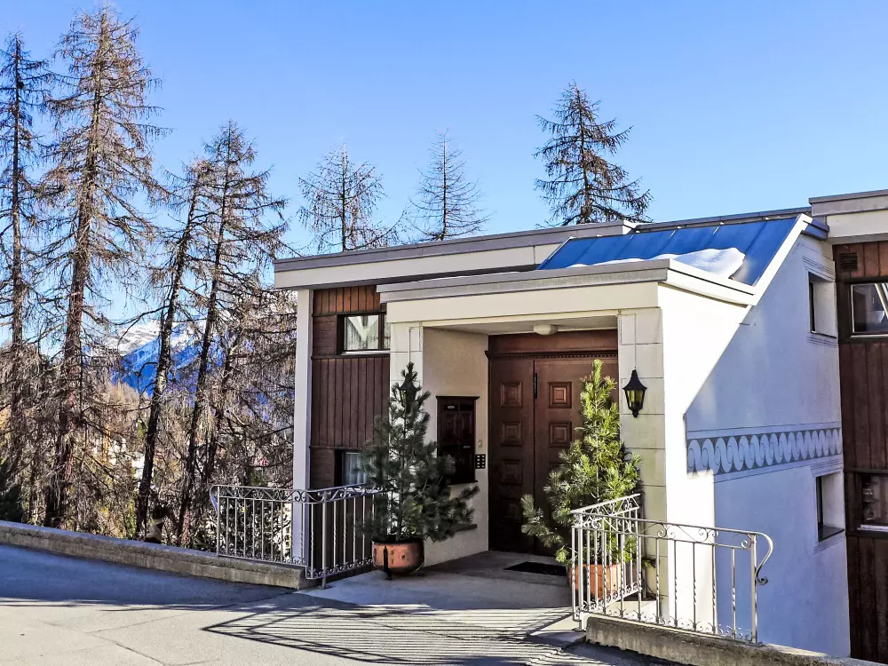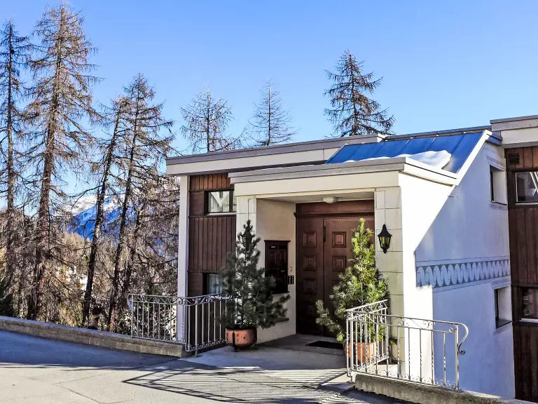 St. Moritz: Immeuble confortable "Chesa Cripels", année de construction 1970, renové en 2010, environné par les arbres. Dans le haut de la station de St. Moritz-Dorf, à 450 m du centre de St. Moritz Dorf, situation tranquille, ensoleillée, surélevée sur un versant, zone avec peu de trafic, à 250 m de la forêt, à 2 km du lac, dans une impasse. En commun: jardin (clôturé). Infrastructures de la résidence: chauffage central, lave-linge, sèche-linge (en commun, en sus). Accès en voiture par un chemin raide. En hiver, merci de prévoir des chaînes, en hiver 4x4 recommandé. Sentier raide (30 marches) jusqu'à la maison. Garage individuel près de la maison. Magasins 700 m, magasin d'alimentation 800 m, supermarché 1.9 km, restaurant 800 m, bar 800 m, boulangerie 1 km, café 1 km, zone piétonne 800 m, location de bicyclettes 2.4 km, arrêt de bus "St. Moritz, Kulm" 700 m, gare ferroviaire 2 km, piscine couverte 2.8 km, centre thermal "Heilbadzentrum St. Moritz" 2.9 km, lac St. Moritzer See 2 km. Terrain de golf (18 trous) 6.4 km, ecole de surf 7.4 km, tennis 3.1 km, tennis couvert 3.1 km, golf miniature 2.8 km, centre équestre 4.4 km, chemins de randonnées pédestres depuis la maison 250 m, piste cyclable 2.8 km, téléphérique 3 km, train de montagne 350 m, téléski 350 m, pistes de ski 1 km, location de ski 400 m. École de ski 500 m, piste de luge 5.5 km, ski de fond 2.8 km, patinoire 2.4 km, jeux pour enfants 1.2 km. Attractions à proximité: Segantini Museum 1.7 km, Engadiner Museum 1.5 km, Mili Weber-Haus 4.5 km, Olympia Bob Run mit Museum 1.2 km, Nietzsche Museum in Sils-Maria 11.6 km. Les domaines skiables de renommée sont facilement accessibles: Corviglia Piz Nair 700 m, Corvatsch - Furtschellas 8.6 km, Diavolezza - Lagalb 19.5 km. Les lacs connus sont facilement accessibles: St. Moritzer See 2 km, Silvaplaner See 7.4 km, Silser See 11.6 km. Région de randonnées: Stazerwald & Stazersee, Corviglia Piz Nair, Muottas Muragl. Veuillez noter: voiture recommandée, sans ascenseur. Déchargement et chargement des bagages à la location de vacances. La remise des clés a lieu à l'agence Interhome de St. Moritz Bad. D'autres appartements sont également proposés à la location dans cette maison de vacances. Centre à environ 500m (escalier).