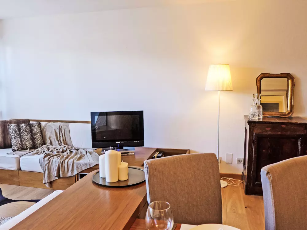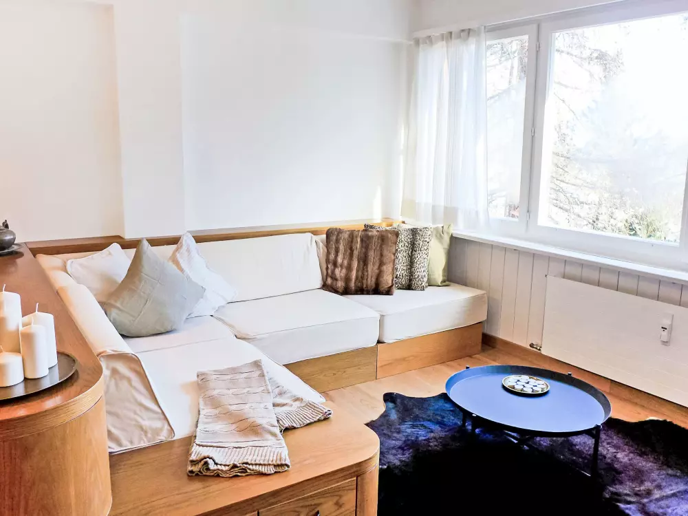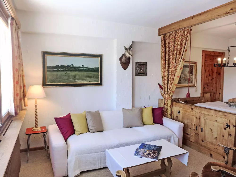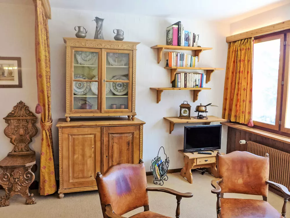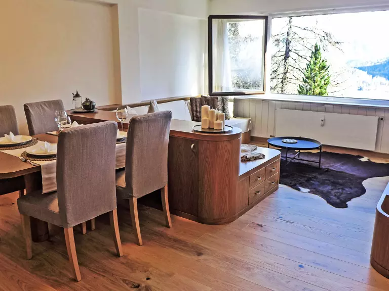 St. Moritz: Immeuble confortable "Chesa Cripels", année de construction 1970, renové en 2010, environné par les arbres. Dans le haut de la station de St. Moritz-Dorf, à 450 m du centre de St. Moritz Dorf, situation tranquille, ensoleillée, surélevée sur un versant, zone avec peu de trafic, à 250 m de la forêt, à 2 km du lac, dans une impasse. En commun: jardin (clôturé). Infrastructures de la résidence: chauffage central, lave-linge, sèche-linge (en commun, en sus). Accès en voiture par un chemin raide. En hiver, merci de prévoir des chaînes, en hiver 4x4 recommandé. Sentier raide (30 marches) jusqu'à la maison. Garage individuel près de la maison. Magasins 700 m, magasin d'alimentation 800 m, supermarché 1.9 km, restaurant 800 m, bar 800 m, boulangerie 1 km, café 1 km, zone piétonne 800 m, location de bicyclettes 2.4 km, arrêt de bus "St. Moritz, Kulm" 700 m, gare ferroviaire 2 km, piscine couverte 2.8 km, centre thermal "Heilbadzentrum St. Moritz" 2.9 km, lac St. Moritzer See 2 km. Terrain de golf (18 trous) 6.4 km, ecole de surf 7.4 km, tennis 3.1 km, tennis couvert 3.1 km, golf miniature 2.8 km, centre équestre 4.4 km, chemins de randonnées pédestres depuis la maison 250 m, piste cyclable 2.8 km, téléphérique 3 km, train de montagne 350 m, téléski 350 m, pistes de ski 1 km, location de ski 400 m. École de ski 500 m, piste de luge 5.5 km, ski de fond 2.8 km, patinoire 2.4 km, jeux pour enfants 1.2 km. Attractions à proximité: Segantini Museum 1.7 km, Engadiner Museum 1.5 km, Mili Weber-Haus 4.5 km, Olympia Bob Run mit Museum 1.2 km, Nietzsche Museum in Sils-Maria 11.6 km. Les domaines skiables de renommée sont facilement accessibles: Corviglia Piz Nair 700 m, Corvatsch - Furtschellas 8.6 km, Diavolezza - Lagalb 19.5 km. Les lacs connus sont facilement accessibles: St. Moritzer See 2 km, Silvaplaner See 7.4 km, Silser See 11.6 km. Région de randonnées: Stazerwald & Stazersee, Corviglia Piz Nair, Muottas Muragl. Veuillez noter: voiture recommandée, sans ascenseur. Déchargement et chargement des bagages à la location de vacances. La remise des clés a lieu à l'agence Interhome de St. Moritz Bad. D'autres appartements sont également proposés à la location dans cette maison de vacances. Centre à environ 500m (escalier).
