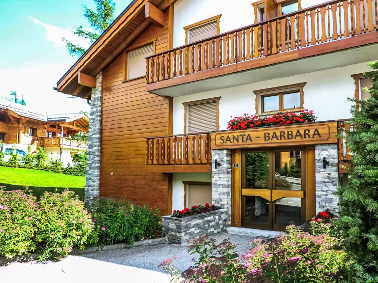Belle résidence accueillante "Santa Barbara", de 3 étages. Dans le bas de la station de Crans, dans le quartier de Route du Golf, à 1.6 km du centre de Crans, situation tranquille, ensoleillée, à 1.4 km du lac, à 2.3 km du domaine skiable, orientée sud. En commun: jardin (pas clôturé) avec pelouse. Infrastructures de la résidence: ascenseur, local pour les skis, chauffage central, lave-linge, sèche-linge, étendoir à linge. Magasins 1.6 km, supermarché 2.2 km, restaurant 1.6 km, boulangerie 2.4 km, arrêt de bus "Maroz" 150 m, gare ferroviaire "Funiculaire Montana Gare" 3.8 km, baignade en lac "Moubra" 3 km. Terrain de golf (18 trous) 2.7 km, remontées mécaniques 2.3 km. Ski de fond 2.7 km. Attractions à proximité: Alaïa Club 2.9 km, Alaïa Bay 24.2 km. Les lacs connus sont facilement accessibles: Etang Long 1.4 km, Grenon 2.4 km. Région de randonnées: Bisse du Ro 3.8 km. Veuillez noter: ski-bus gratuit.