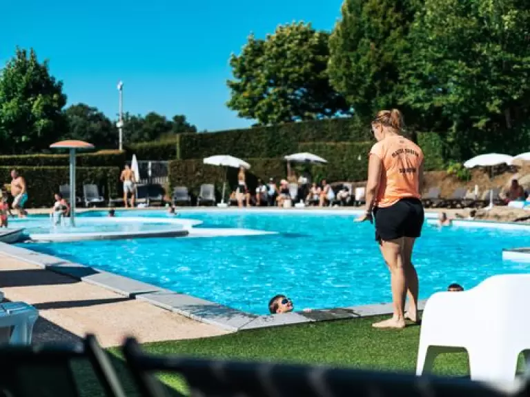 - Une piscine extérieure non surveillée et chauffée du 15.06 au 15.09 avec pataugeoire est accessible pour petits et grands. Une grande terrasse équipée de chaises longues se trouve autour de l'espace aquatique pour un moment de détente avec accès au bar de la piscine.