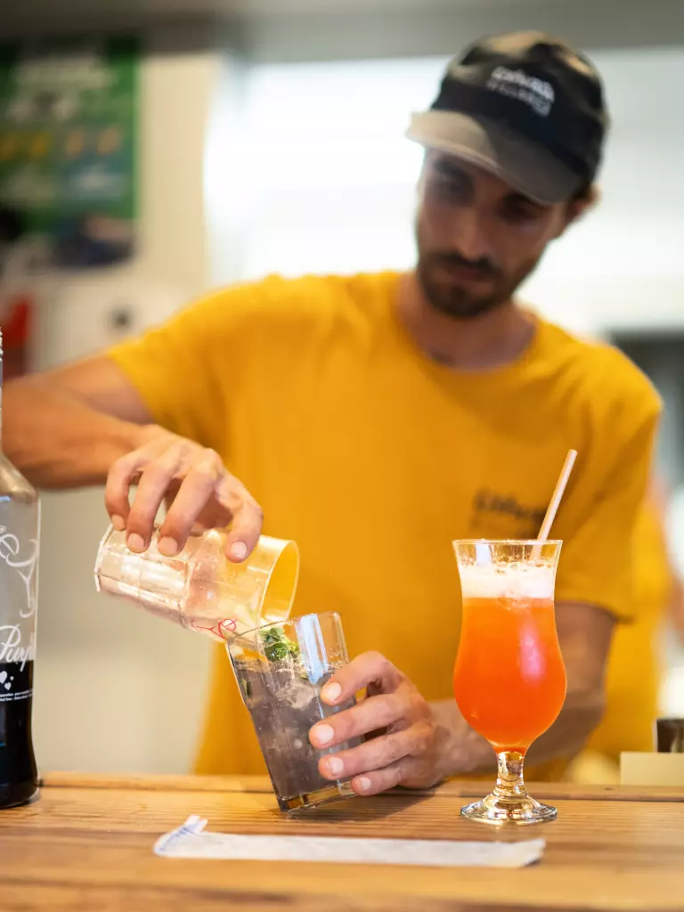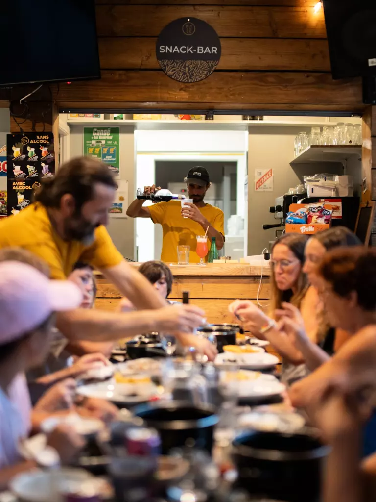 Ouvert tout au long de la journée, notre bar-snack vous accueille pour une pause gourmande ou un apéro convivial à la tombée du jour. Ambiance détendue garantie !
