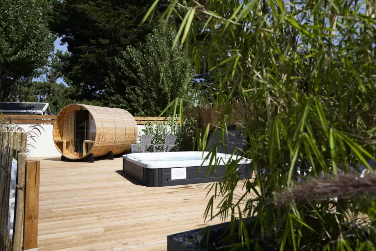 Vous pourrez vous détendre au bord de la piscine chauffée, et profiter de la baignade dans le grand bassin. Les plus petits se feront une joie de s'éclabousser dans le jardin d'eau ludique. Vous profiterez d'un moment de détente et relaxation grâce à l'espace détente, où un sauna et un spa sont installés sur une grande terrasse en bois, espace réservé aux adultes. Au gré des envies, chacun pourra se divertir dans l'aire de jeux, le parcours d'adresse, le terrain multisports, ou bien le terrain de pétanque. Sur place, machine à laver et sèche-linge dans le bloc sanitaire. Vente de glaces en été à la réception. Pas d'animations ni de club enfants mais des activités de créativité, bricolage, land'art, nourrissage des animaux, des activités douces, de découverte de la région ou activités sportives sont proposées en été. De belles balades à pied ou à vélo sur les sentiers pédestres ou les pistes cyclables qui se situent dès la sortie du camping vous attendent. Nombreux sites de visites et activités aux alentours. Pas de bar ni de restaurant mais des Food-trucks en été plusieurs fois par semaine à l'entrée du camping. Nombreux commerces et services à proximité. Distributeurs de baguettes et de pizzas à 100 mètres. Alors à bientôt pour vos vacances en Vendée !