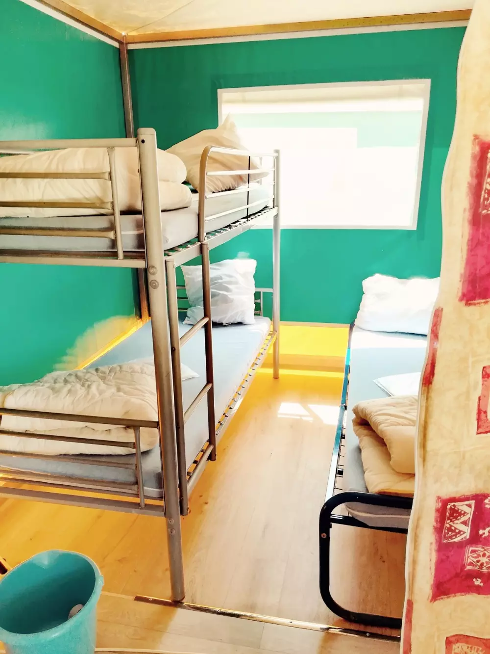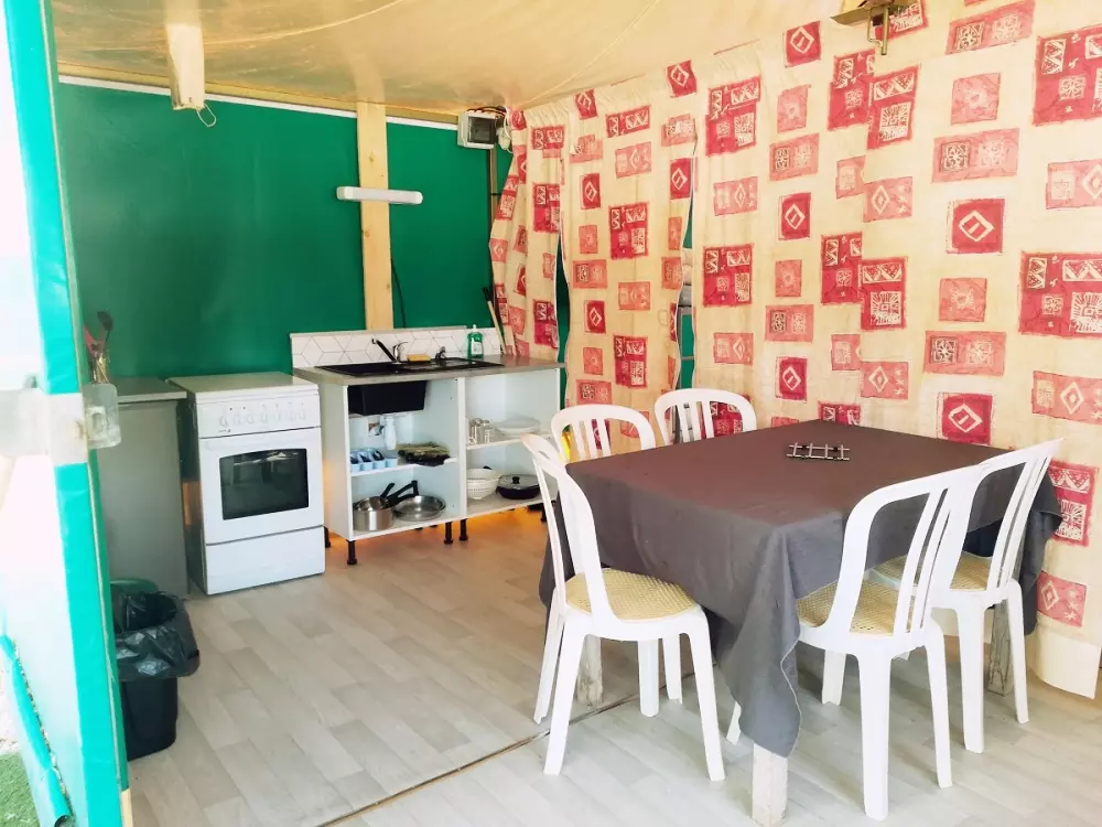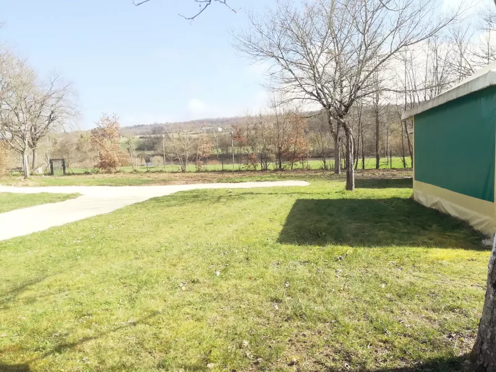 La partie camping composé de 20 emplacements d'environ 60 m² permet d'acceuillir toile de tente, caravane et camping car avec un bloc sanitaire Et 9 Tentes Kiwi possédant 2 chambres