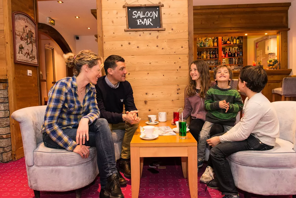 Bar*, terrasse solarium, accès internet WIFI (bas débit) gratuit au bar, au restaurant et en terrasse, casiers à ski,