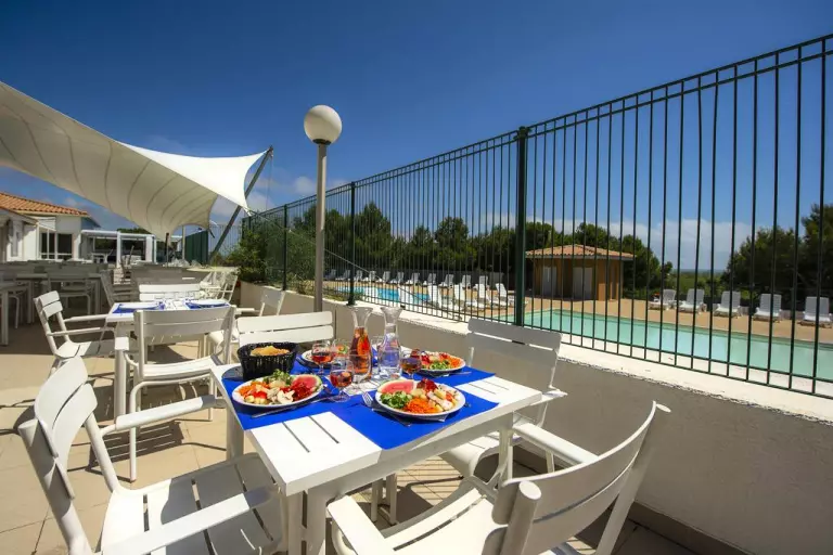 - Restauration variée, service en buffet, vin inclus : entrées chaudes et froides dont Salad'bar avec plus de 20 ingrédients, 3 à 4 plats chauds au choix dont un spécial végétarien, buffet de fromages et de desserts