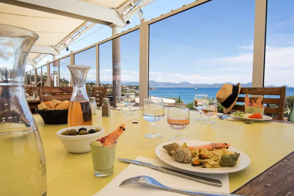 Restauration en salle ou en terrasse semi-couverte avec vue panoramique sur la mer