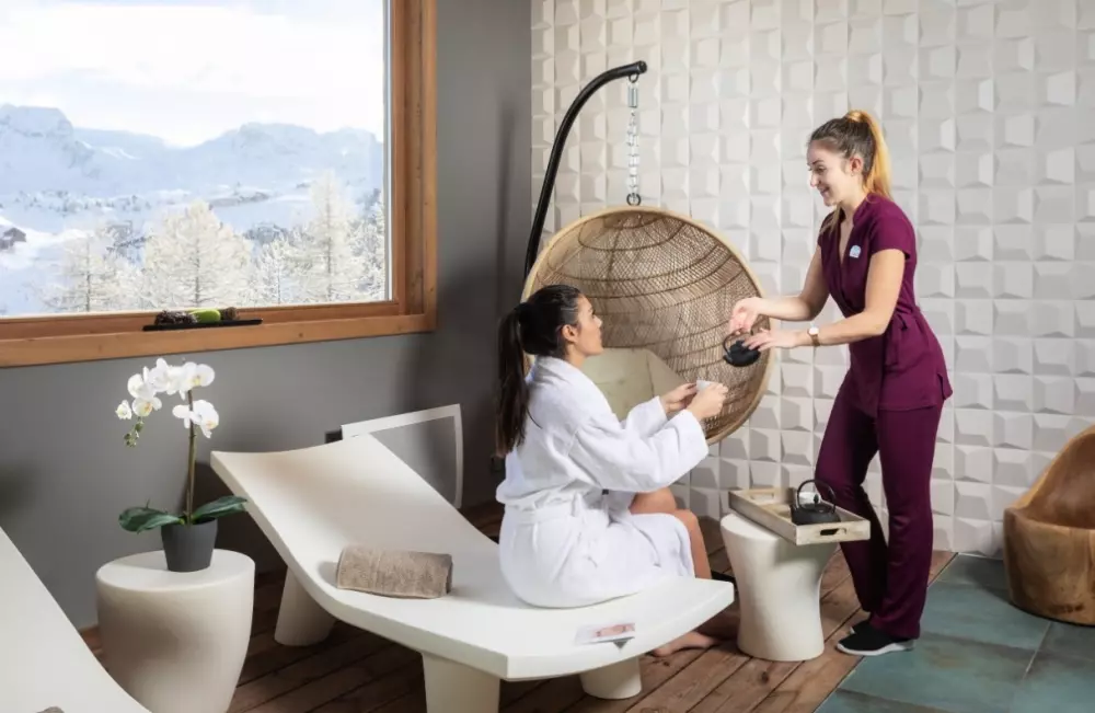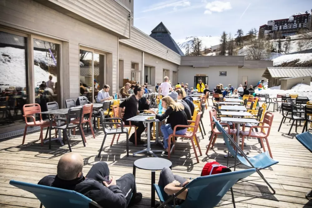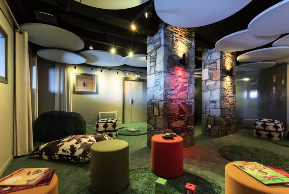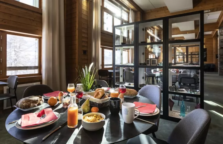 Savourez une boisson chaude sur la terrasse ensoleillée, face aux pistes, ou regardez vos enfants qui apprennent à skier devant l'hôtel. Profitez également du vaste espace bar prolongé par la salle de spectacles sous de hautes poutres de bois chaleureuses. Savourez une cuisine variée et des plats savoyards dans le restaurant. En fin de journée, délassez-vous à l'Espace Aquarelaxant avec sauna, hammam, et son Spa avec massages et soins.