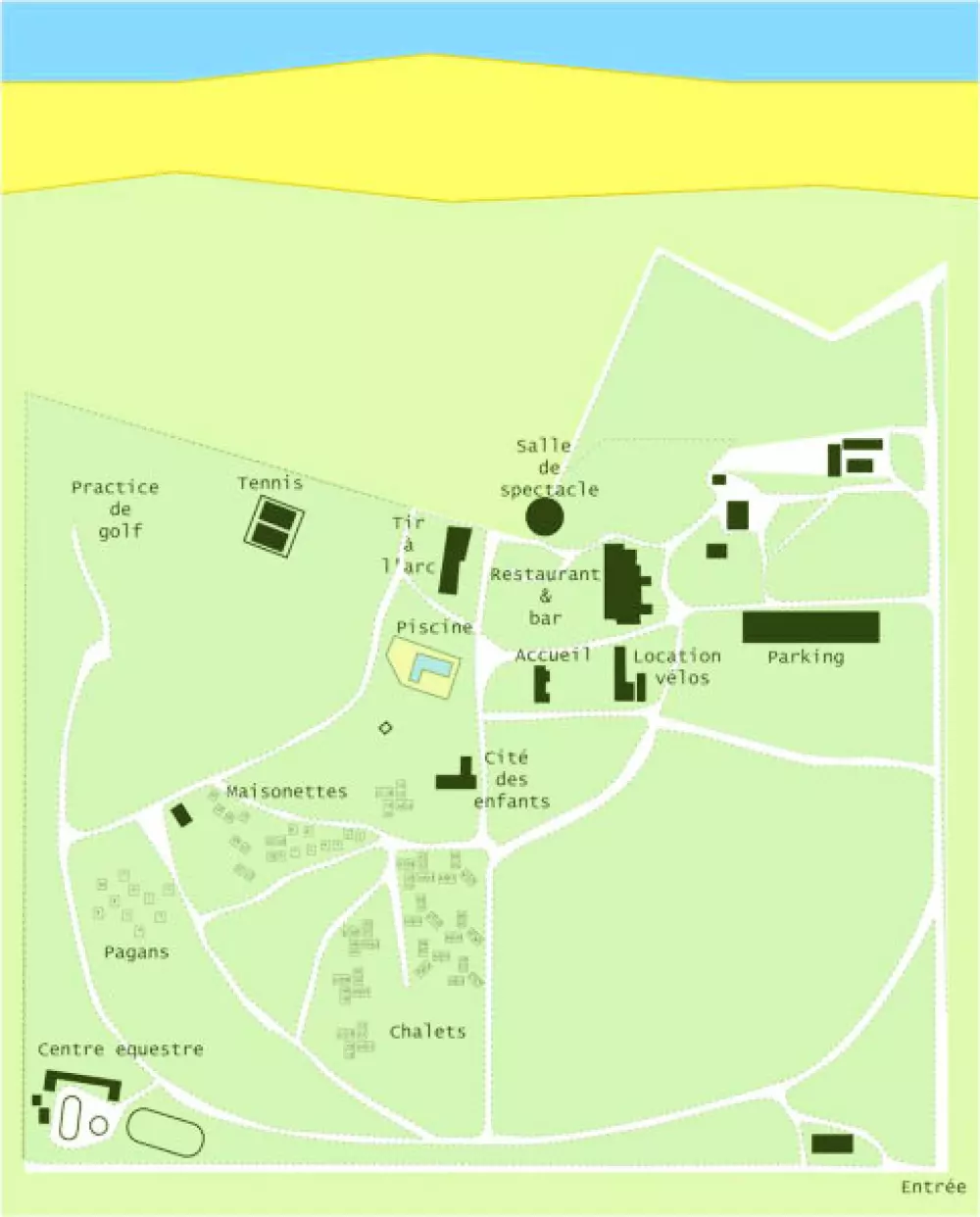 Le village est également équipé d'un ‘centre équestre' ou petits et grands pourront s'adonner aux joies des promenades à cheval et à poneys en bordure d'océan ou à travers la pinède (en supplément).