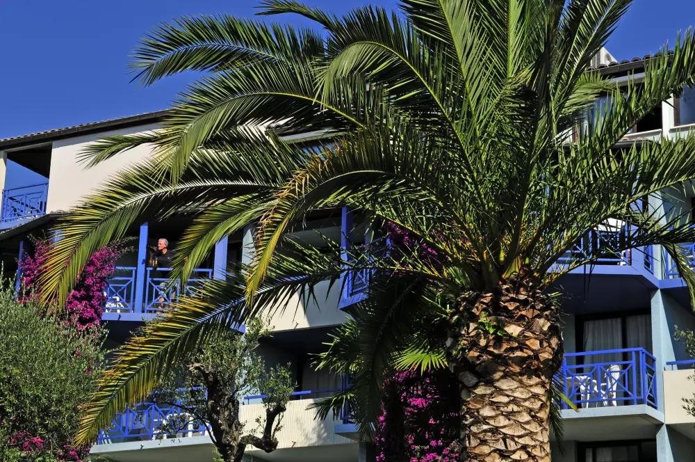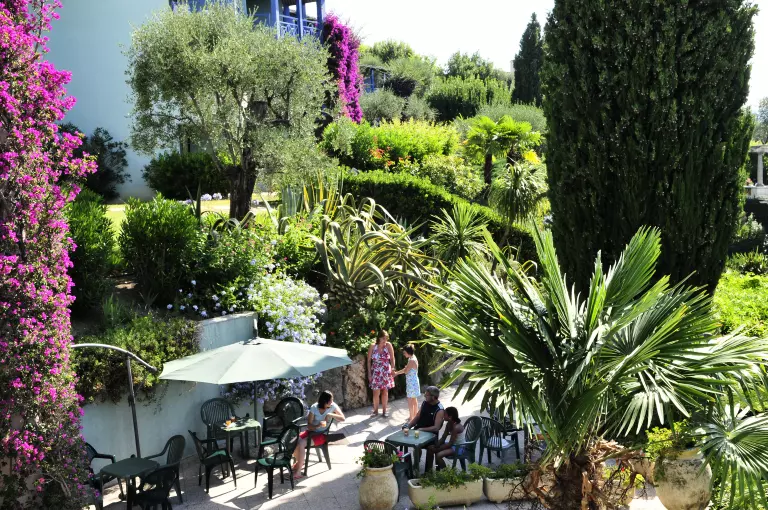L'établissement est situé au coeur d'un parc luxuriant de 2.5 hectares orné de palmiers, d'orangers, de cyprès et de lauriers roses où sont aménagés des équipements de plein air.
