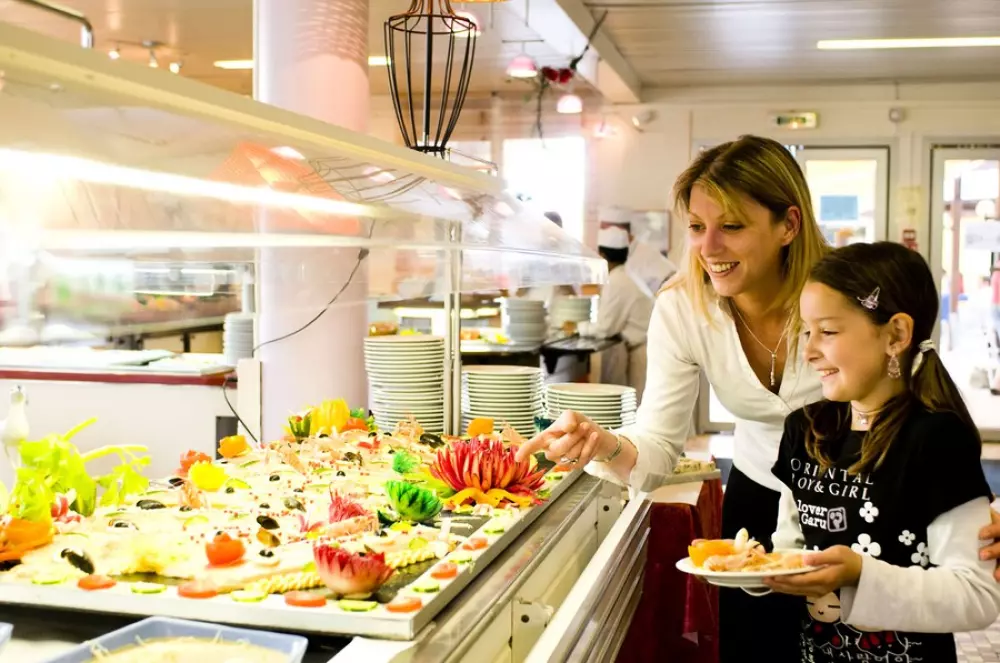 Un service de restauration est proposé en formule pension complète et demi-pension. Les repas sont servis sous forme de buffets variés ou selon des thématiques. Un bar* vous accueillera sur sa terrasse couverte.